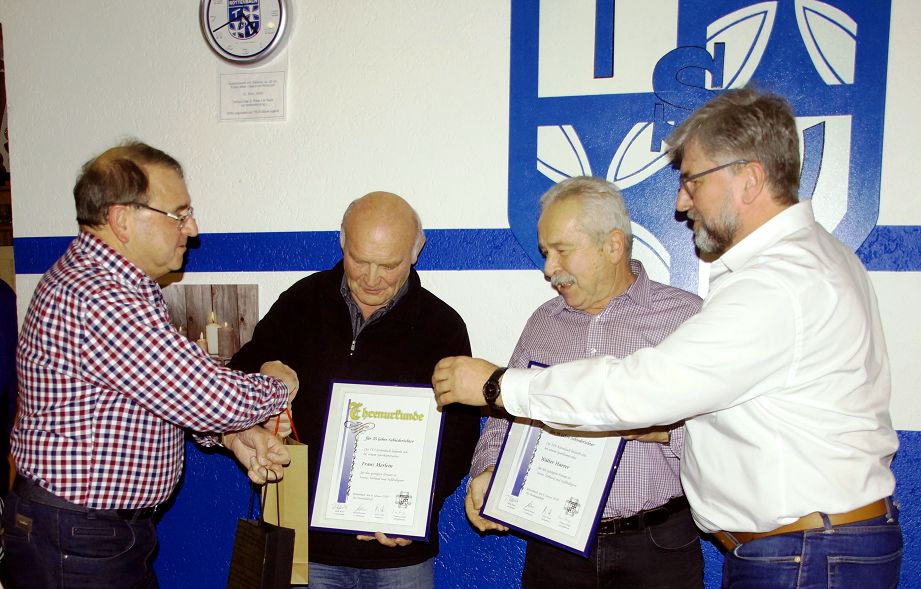 Ehrenurkunden für jeweils 35 Jahre als Schiedsrichter erhielten Franz Merlein und Walter Harrer