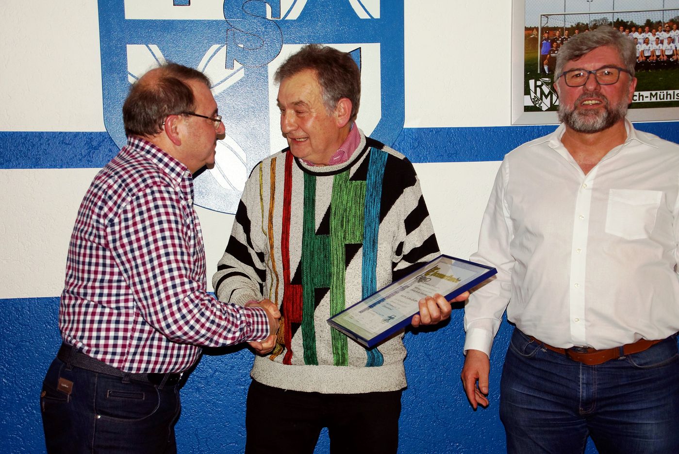 Ehrung für den Schatzmeister des TSV Erich Ritzer für seine Verdienste innerhalb seiner 50-jährigen Mitgliedschaft durch Vorsitzenden Jakob Bauer