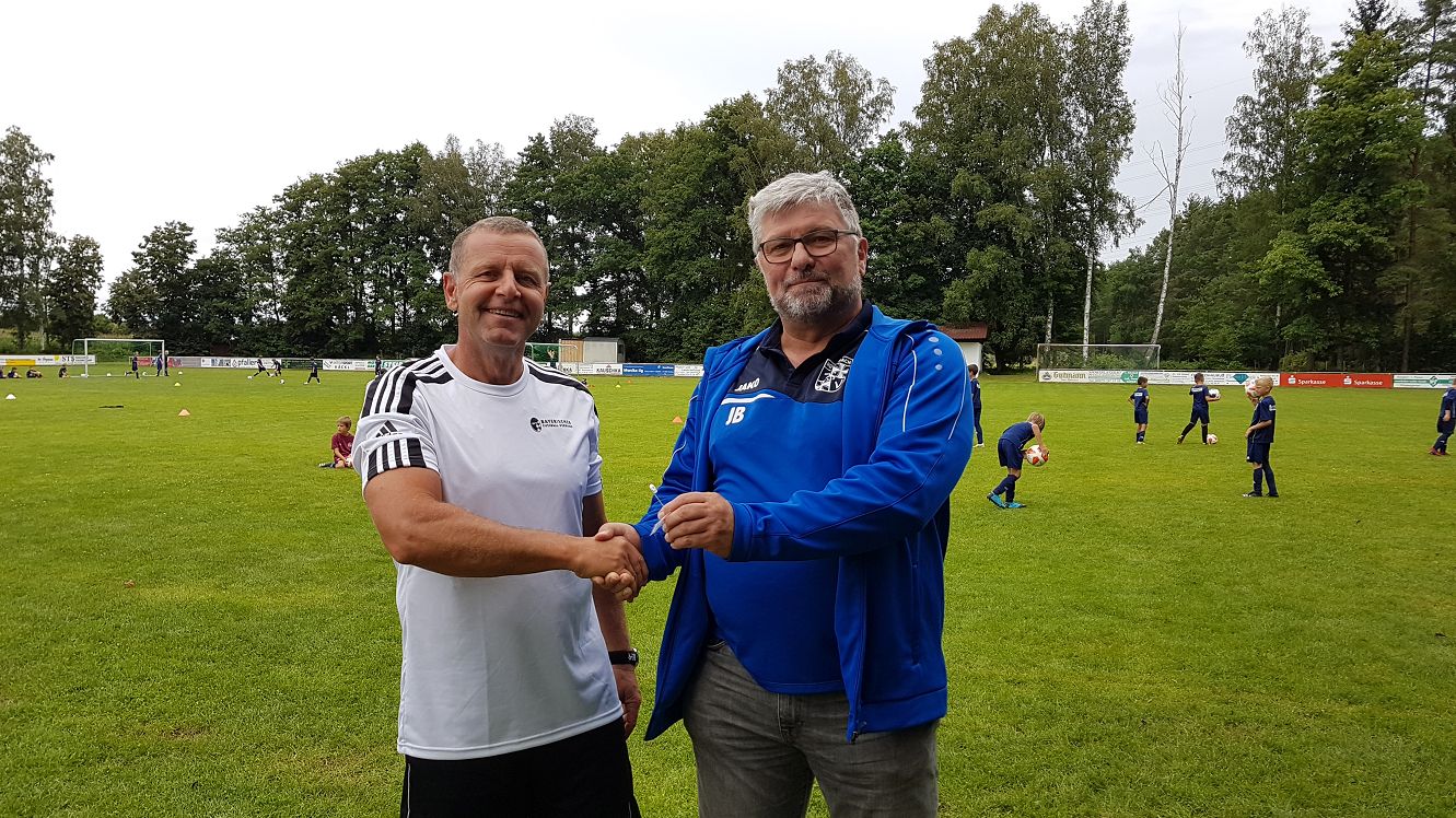 Auszeichnungen gab es nicht nur für die Kleinsten. Jakob Bauer nahm in seiner Eigenschaft als 1. Vorsitzender des TSV Röttenbach die Gelegenheit wahr, Martin Bittl die Ehrennadel für 40 Jahre Mitgliedschaft im BLSV zu überreichen.
