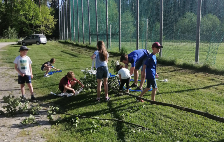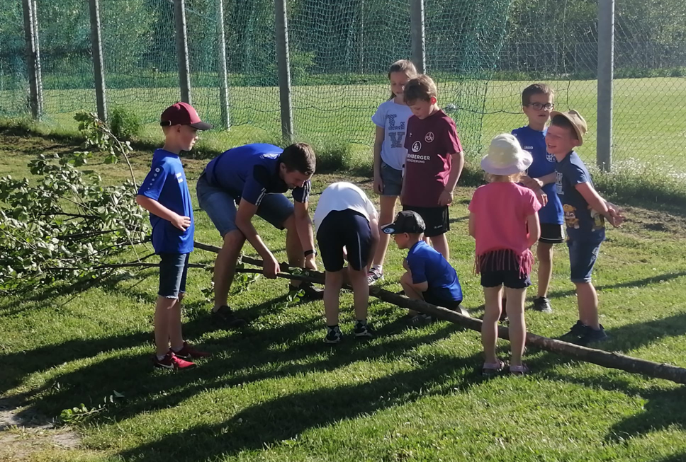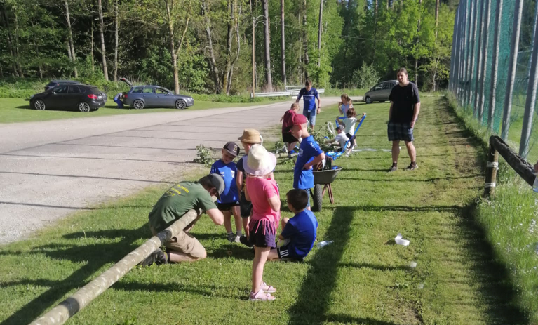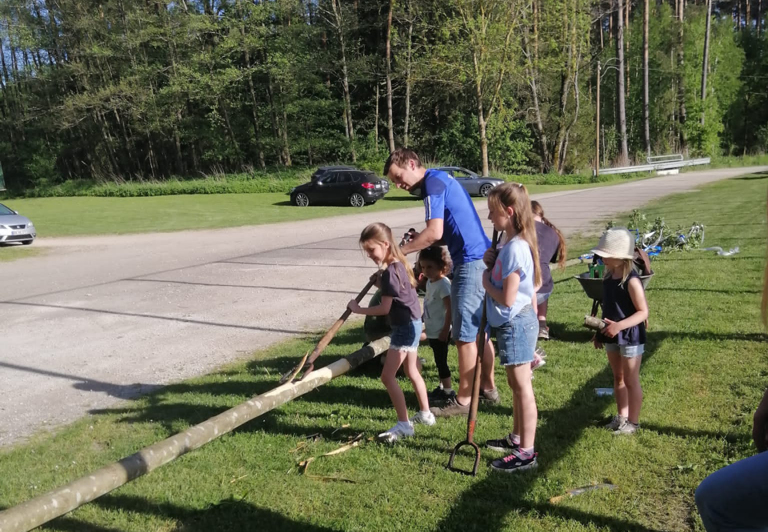 Das Aufrichten eines Maibaumes ist ein schwieriges Unterfangen und ohne die tatkräftige Hilfe einer kleinen Schar eifriger Zwerge wäre es diesmal wohl gescheitert. Aber so stand dieses mächtige Monument innerhalb kürzester Zeit akurat ausgerichtet und stolz vor unserem Sportheim.