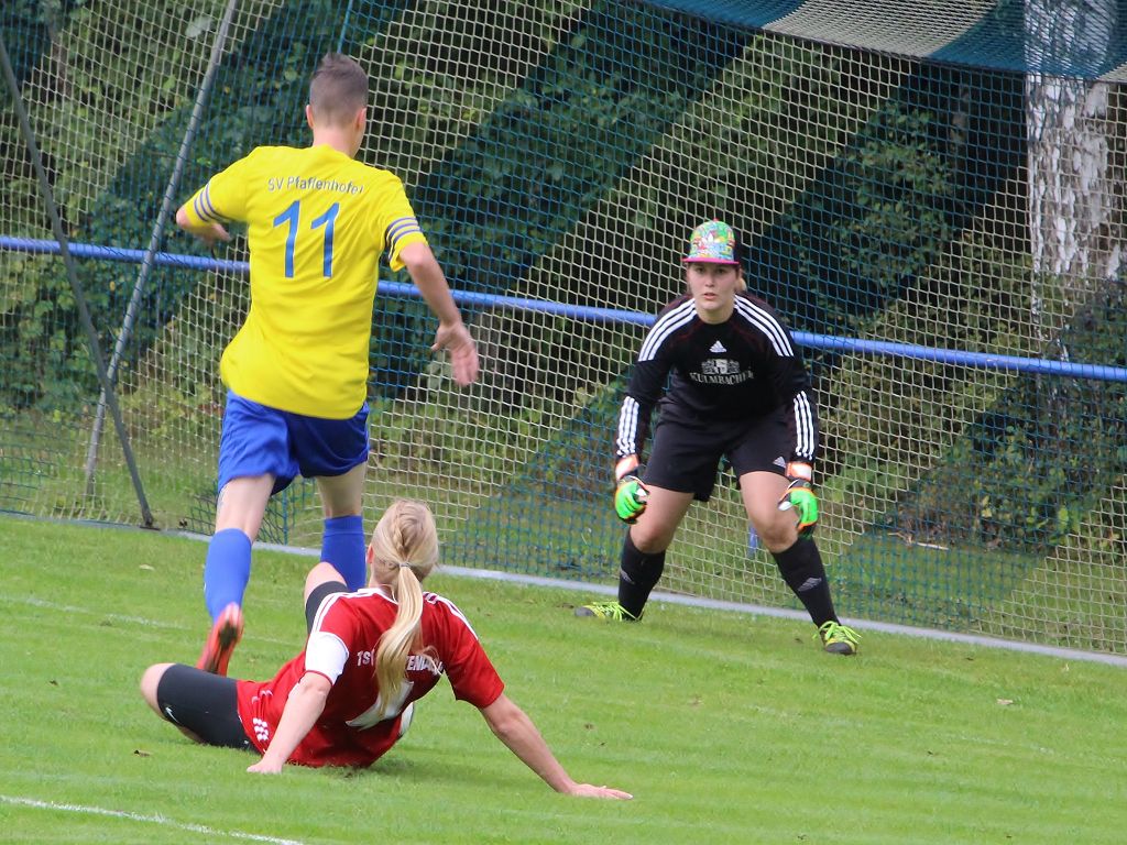 Pfaffenhofen startete forsch und mutig in die Partie, während der TSV sich nervös in die eigene Hälfte drängen ließ. Es waren noch keine zehn Minuten gespielt, da musste Schlussfrau Lena Wachter das erste Mal hinter sich greifen. Nach einem Querpass von außen konnte die eingelaufenen SV-Stürmerin unbedrängt zur Führung einschieben. Auch in der Folge musste unsere Mannschaft über weite Strecken dem Ball hinterherlaufen, Pfaffenhofen spielte Vorne cleverer und ließ der TSV-Hintermannschaft keine Zeit zum Verschnaufen. Bis auf zwei Distanzschüsse konnte der TSV in der ersten Hälfte keine nennenswerten Chancen verzeichnen. Pfaffenhofen hingegen hätte die Führung in den ersten zwanzig Minuten weiter ausbauen müssen (10.,14.,19.).