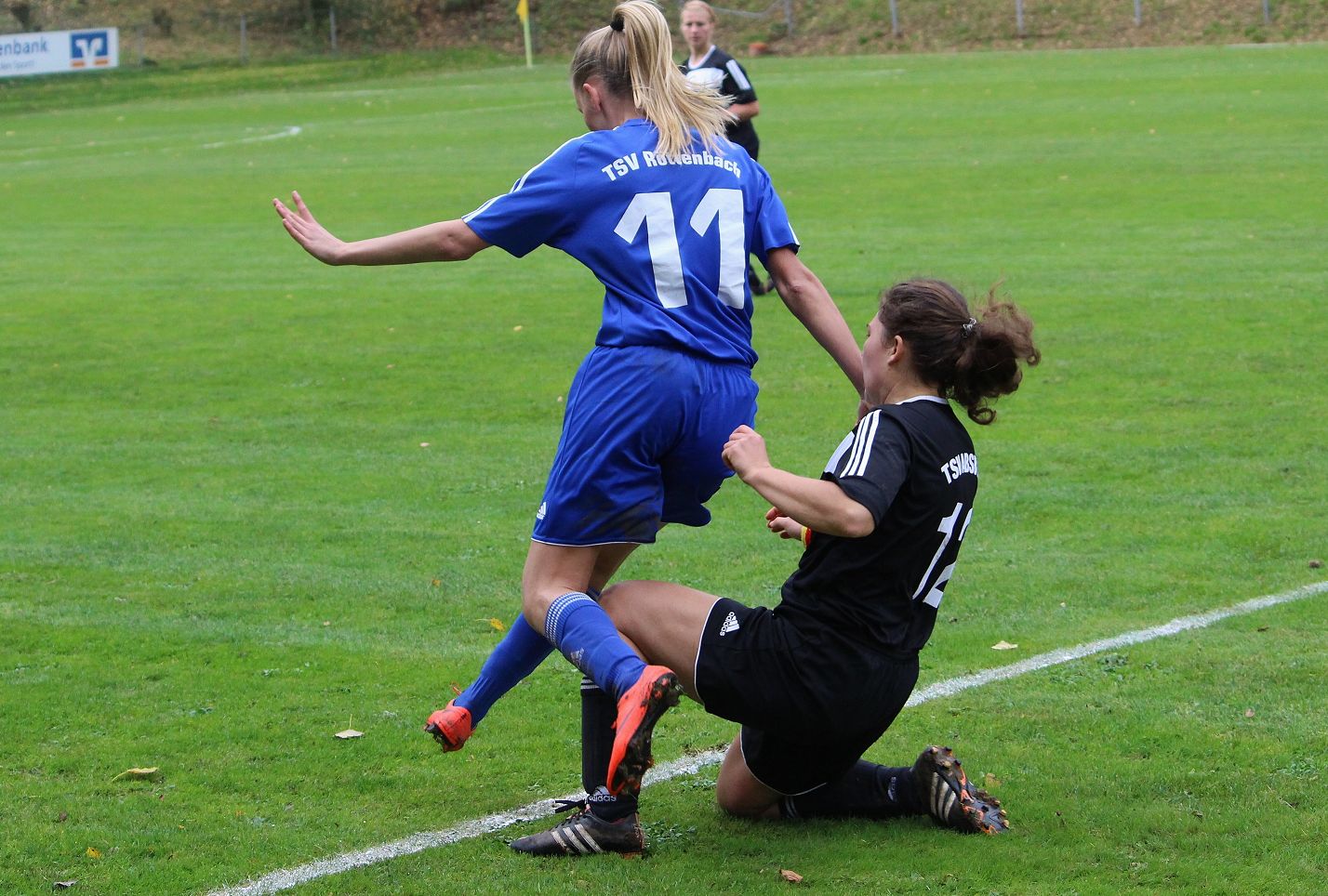 In der zweiten Hälfte holte der TSV direkt einen Eckball. Nach der Hereingabe konnten sich die Gastgeberinnen nicht schnell genug befreien: Vanessa Marny stand goldrichtig und hämmerte das Leder unter die Latte (49.)!! Nach der Führung zog sich unser Team etwas weiter in die eigene Hälfte zurück und ließ sich damit auf eine wahre Abwehrschlacht ein. Der FC drängte auf den Ausgleich, scheiterte aber zweimal an der Querlatte (65., 70.). Unterdessen musste der TSV auch noch Keeperin Lisa Wachter verletzt austauschen (68.). Die eingesprungene Katharina Schwarz fand aber sofort in die Partie und blockte direkt eine allein heranlaufende FC-Stürmerin (72.). Die letzte Chance für den TSV gab es bei einem Freistoß aus 16 Metern, nachdem Maria Trost von zwei Verteidigerinnen unsanft von den Füßen geholt wurde. Lena Braungart trat das Leder aber zu zentral auf den Kasten, sodass die FC-Keeperin keine Mühe hatte (82.). Kurz vor Schluss gab es noch eine aufsehenerregende Situation im Strafraum des TSV. Ein Rückpass hüpfte über eine Unebenheit unserer Keeperin unter dem Schlappen durch, diese nahm das Leder von der Situation abgelenkt in die Hand, doch der Unparteiische ahndete den Rückpass zum Unmut der Gastgeberinnen nicht (88.). Bis zum Schluss mühte sich der FC, aber der TSV kämpfte um jeden Ball. Damit blieb es beim 1:2-Endstand für unseren TSV!