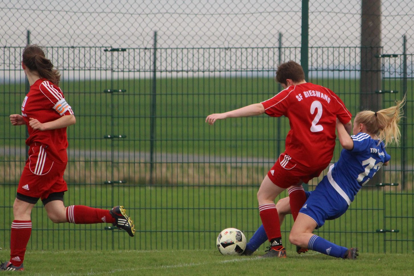 Nach der starken ersten Hälfte war es dem TSV noch nicht genug: In der 57. Minute setzte sich Maria Trost über links durch und konnte platziert ins rechte Eck abschließen. Nach dem 0:5 gönnten sich unsere Damen eine kleine Verschnaufpause und nahmen etwas Tempo aus dem Spiel. Bieswang erarbeitete sich in dieser Phase mehr Spielanteile, doch in das Aufbäumen der Gastgeberinnen setzte der TSV den nächsten Treffer. Lena Braungart wurde zentralstehend freigespielt, nahm Maß und netzte gegen die Laufrichtung der BIeswanger Schlussfrau zum 0:6 ein (80). Kurz vor dem Abpfiff durfte die Heimelf den Schlusspunkt setzten: Die Bieswanger Stürmerin wurde bei ihrem Solo nicht energisch genug abgedrängt und konnte ins kurze Eck einschieben (84.).