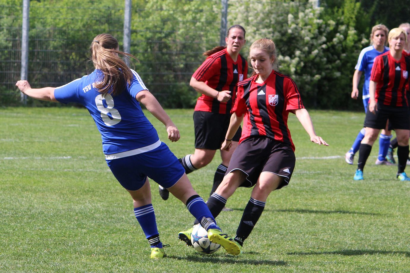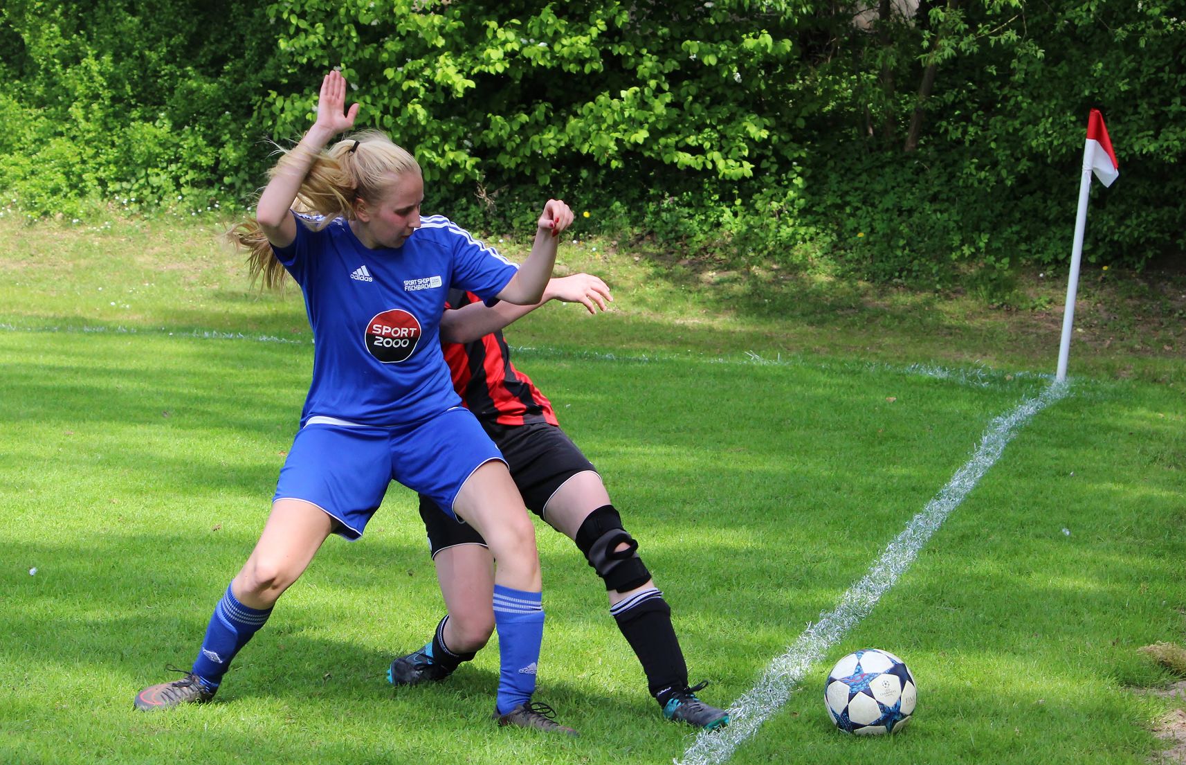 Wachgerüttelt von den guten Möglichkeiten nahm unser Team wieder Fahrt auf und setzte den Gegner unter Druck. In der 23. Minute konnte Christina Trost, frei am Sechzehner stehend, abschließen. Der Schuss verfehlte das lange Eck aber knapp. In der nächsten Aktion legte Maria Trost auf Lena Braungart quer, die diesmal nicht lange fackelte und das Leder in die Maschen schob (26.). Den sehenswerten Schlusspunkt der ersten Hälfte durfte wieder Annika Merlein markieren, doch das Glück war erneut nicht auf ihrer Seite und Wolfstein konnte nach dem Lattentreffer wieder klären (45.).