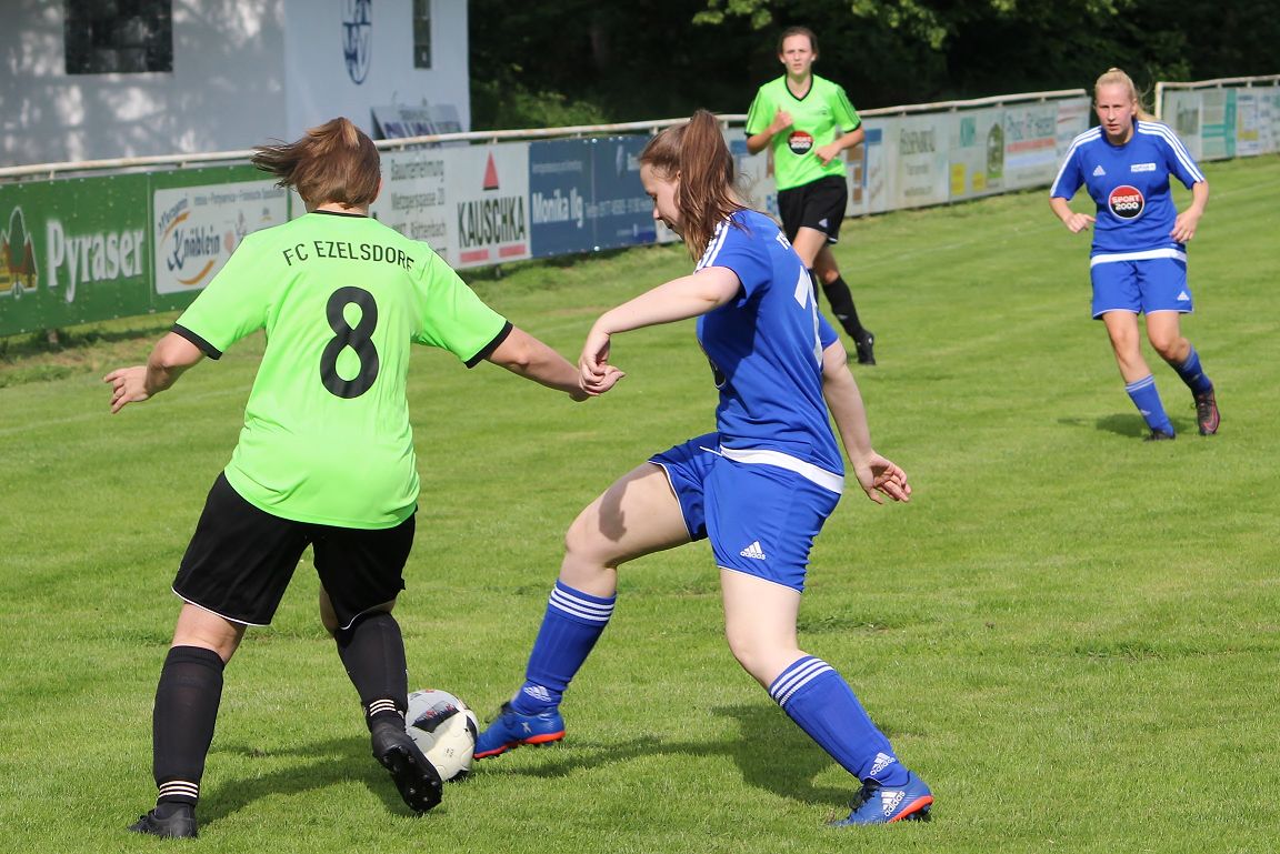 Nach der Pause kam unser Team noch stärker zurück, die Führung reichte der torhungrigen Elf noch nicht aus. Melisa Tercan brachte eine Flanke in den Sechzehner, wo Lena Braungart zum 3:0 einschob (50.). Nur Augenblicke nach dem Anstoß schnappte sich Maria Trost das Leder, setzte sich gegen drei Gegnerinnen durch und ließ auch der Torhüterin keine Chance mit ihrem Abschluss – 4:0 (51.)!! Der TSV brachte die Abwehr der Gäste mächtig ins Schwimmen und belohnte sich in der 54. Minute mit dem nächsten Treffer. Eine Flanke von Isabella Fraissinet landete auf der anderen Seite bei Maria Trost, die legte nochmals quer auf die eingelaufene Melisa Tercan, die lediglich den Fuß hinhalten musste. Unsere Mannschaft blieb weiter auf Kurs und erneut war es Tercan, die sich die Kugel schnappte, die Torhüterin der Ezelsdorfer konnte der quirligen Stürmerin nur noch hinterher Blicken, wie sie den Ball in den leeren Kasten bugsierte (61.).