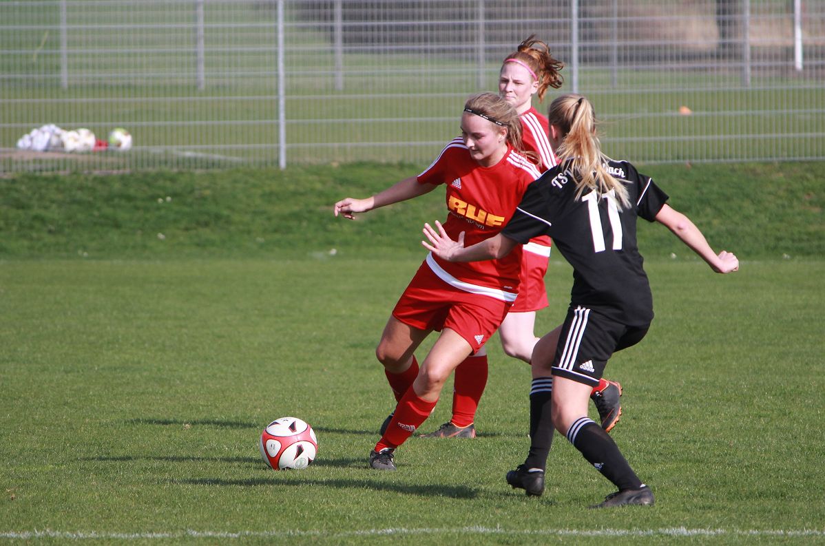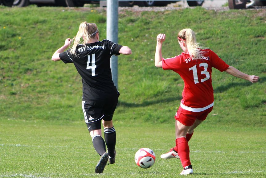 Das Spiel startete auf beiden Seiten hektisch und mit vielen Fehlpässen im Spielaufbau, was auch in beiden Strafräumen zu zahlreichen Gefahrensituationen führte. Sowohl die Gastgeberinnen, als auch der TSV hätten in den ersten Minuten den ersten Treffer markieren können (2., 7.). In den darauffolgenden Minuten musste der TSV weitere Standardsituationen der Mosbacherinnen entschärfen, Schlussfrau Alex Bedau musste hellwach bleiben (9., 17., 18.). Nur Augenblicke später rettete Tanja Herzog nach einem weiteren Eckball per Kopf.