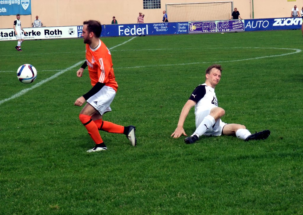 In der 70. Minute konnte Markus Trost den 20-Meter Schuss eines Rother Stürmers gerade noch zur Seite fausten.