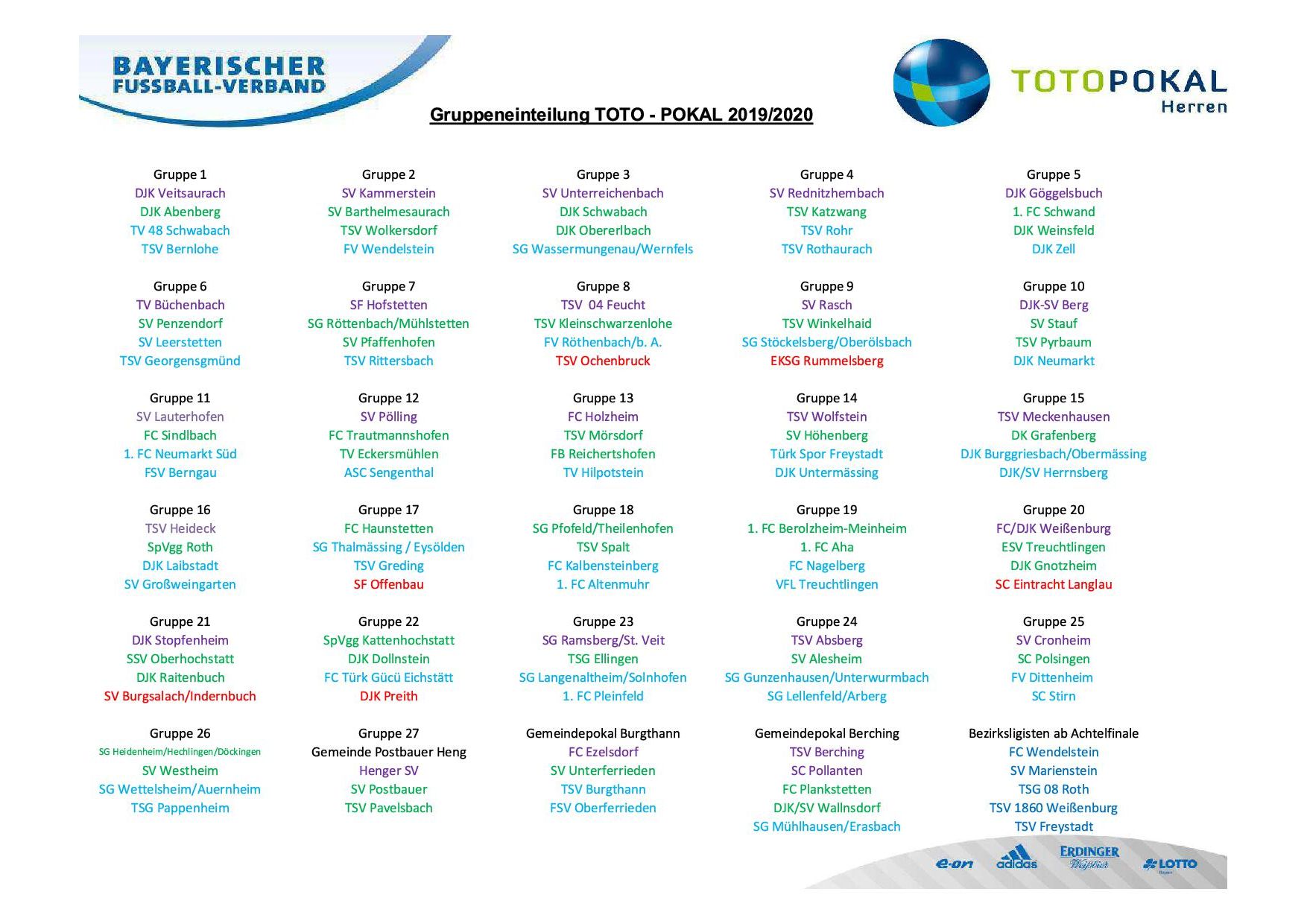 Einteilung der Gruppenphase Toto-Pokal Herren im Spielkreis Neumarkt/Jura Saison 2019/2020.