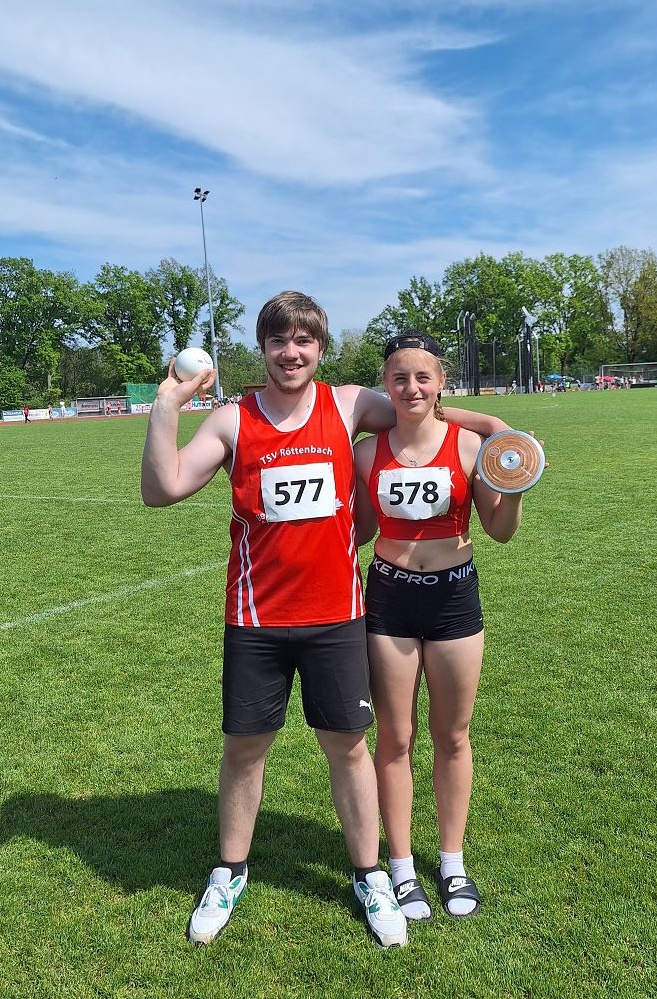 David Kern und Jule Wechsler vom TSV Röttenbach/LG Landkreis Roth gingen beim Leichtathletikmeeting in Wasserburg am Inn im Blockmehrkampf Wurf an den Start. Dabei war das Ziel von David Kern, 2200 Punkte zu erreichen, die er als Zusatzleistung braucht, um Ende Juli bei den Deutschen U16 Meisterschaften in Koblenz, im Kugelstoßen und Diskuswerfen, antreten zu dürfen. Nachdem er im Diskuswerfen mit 44,06 Metern einen sehr guten Start hingelegt hatte, brachte er den 100 Meter Lauf, den 80 Meter Hürdenlauf sowie das Weitspringen mit soliden Ergebnissen hinter sich.